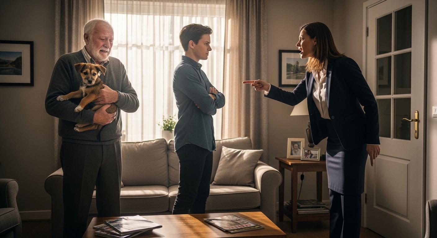 “Because he chose that mangy dog over his family,” she said, taking another sip. “That thing drags its broken leg around, sheds everywhere, and ruins the hardwood floors. I told him plain and simple. Either the mutt goes, or he goes with it.”