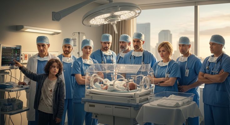 Eight senior specialists stood in complete silence around the hospital crib as the monitor displayed a single uninterrupted line that confirmed the worst outcome anyone in the room had ever witnessed in their professional lives.