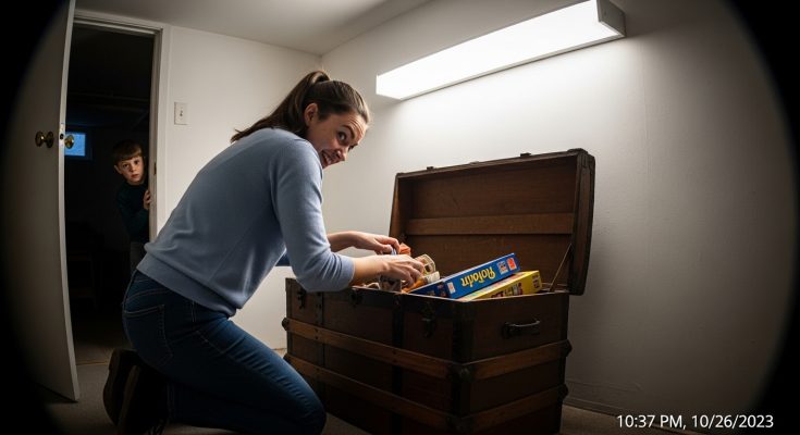 “I’ve heard weird noises down there. Like there’s someone else waiting for her! Or… meeting her. But whenever she’s fetched me from school, there’s never been anyone else at home. Look, Mom. I think we need to put a camera in the basement.”
