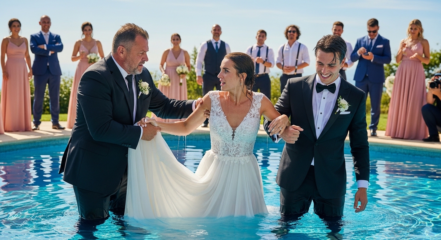 And next time, if there’s a wedding, there will be no poolside pranks—just someone who listens the first time she says, please don’t.